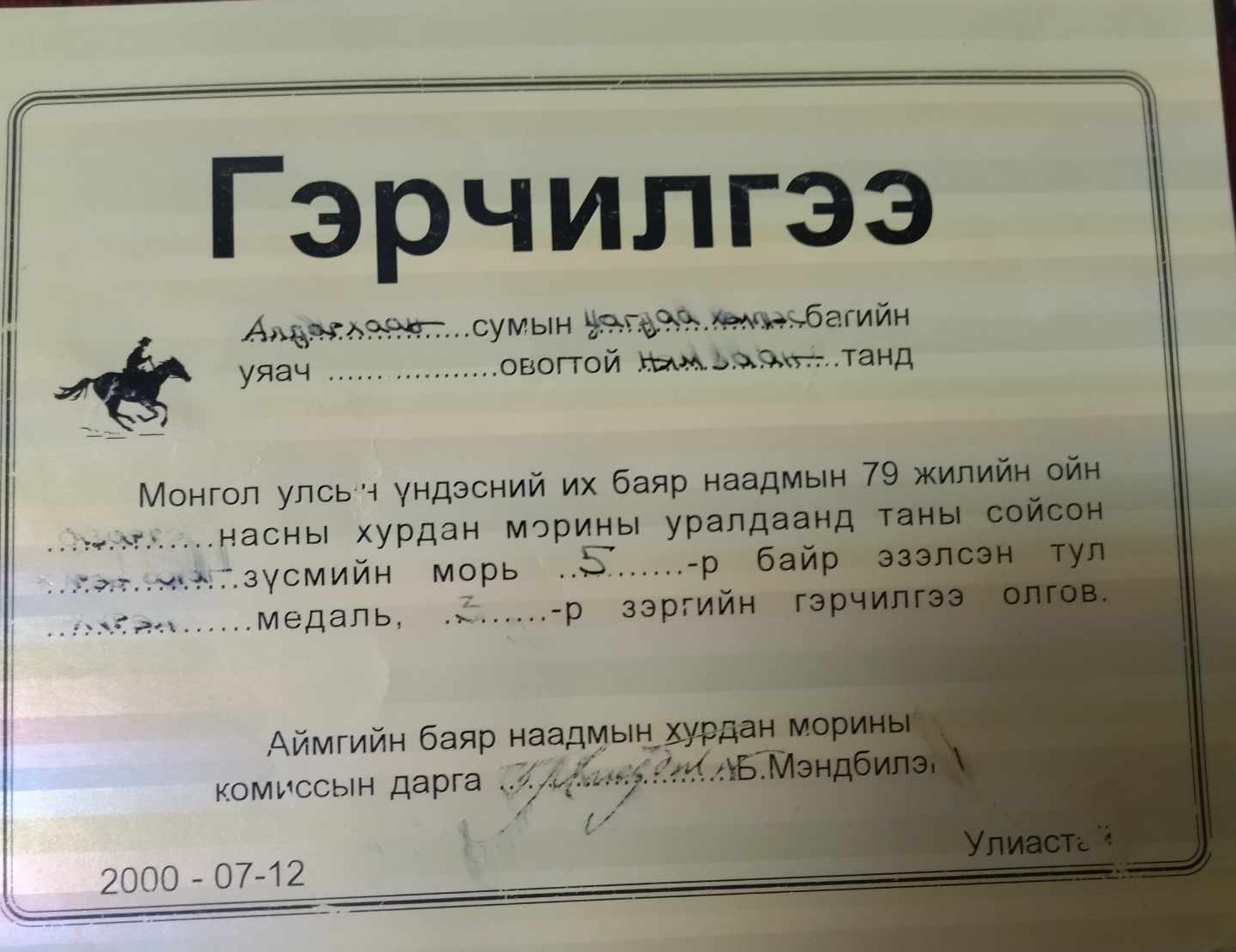 Завхан аймагт түрүүлж айрагдсан морьдын үнэмлэх
